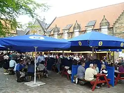 For many years, the Fringe Club (variously in the High Street from 1971 and at Teviot Row House from 1981) provided nightly showcases of Fringe fare to allow audiences to sample shows. In its earlier years the club also provided a significant space for after-hours socialising at a time when Edinburgh's strict licensing laws meant a 10pm pub closing time. For a time, the main ticket office was in the University Chaplaincy Centre, and then in the Royal Mile Centre on the High Street.[28] Although the Fringe was now associated with the High Street, areas like the New Town, West End and Morningside were also prominent in this period.[32]