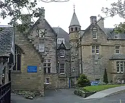 The Edinburgh Theological College was founded in 1810 to train Anglican clergy to serve in the Scottish Episcopal Church.[1] In 1891 the college moved to Coates Hall[2] in Rosebery Avenue[3] where it gradually expanded to include residential accommodation and a library.[4] The college’s academic hood was black lined with thistle green.[5] The college closed in 1994 and the site is now used by St Mary's Music School.[6]