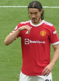 On 5 October 2020, Cavani joined Premier League club Manchester United on a one-year deal with an option to extend for a further year.[88][89] He was given the prestigious number 7 shirt.[90] On 24 October, he made his Premier League debut from the bench in a 0–0 draw against Chelsea.[91] On 7 November, Cavani scored his first goal in the Premier League in a 3–1 away win against Everton.[92] On 29 November, Cavani scored twice, including the winning goal in added time, in a 3–2 comeback win against Southampton after coming on as a half time substitute.[93]