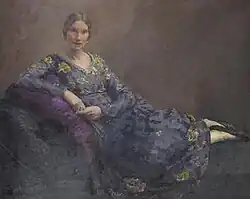 Wheatley was born in London and attended the Slade School of Art there from 1906 to 1908 and then studied at the Académie Colarossi in Paris.[4][1][3][5] She spent some time in Newlyn before moving back to London where she established her career as an artist.[6] In 1910 the Walker Art Gallery in Liverpool purchased her watercolour on ivory The Lady Clarissa and a similar drawing Seated Women, from 1913, is in the Tate collection.[6] Wheatley became a regular exhibitor at the Royal Academy showing there numerous times between 1914 and 1964.[6] She also showed with the Royal Miniature Society and at the New English Art Club of which she became an elected member in 1921.[4] In 1912 she married the painter John Laviers Wheatley and in 1925 the couple moved to South Africa.[7] There Edith Grace Wheatley was the senior lecturer in Fine Art at the University of Cape Town while John Wheatley was a professor at the same institution and became director of the National Gallery of South Africa.[2] Edith also completed several public commissions while in Cape Town. These included a sculpture for the city's new law courts plus wall and ceiling paintings for the entrance to the National Gallery.[8] The couple remained in South Africa until 1937 when they returned to England and settled in Sheffield.[4][5] During World War II Edith Grace Wheatley was commissioned to depict the war's impact on the local steel industry. To this end she greatly changed her painting style. The resulting large paintings, Forging six-pounder shell bodies, Kilnhurst steel works and The tyre mill, Kilnhurst steel works, were shown at the Royal Academy in 1945 and 1946 respectively.[6]