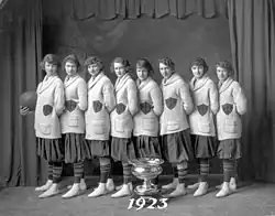 In 1915, the Grads defeated women's basketball teams across Alberta to become provincial champions.[9] Teams were allowed to challenge the title holders to a match at any time during the year—with a three-month wait between rematches, if defeated—and the Grads successfully held on to their trophy for the next several years.[10] In 1917, with a growing reputation for beating all challengers, the Grads retained their provincial champion status without needing to defend it once.[9]