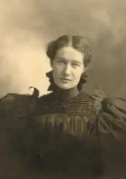 Edna Bel Beachboard was born on October 13, 1872[1][2] in Hudson, Michigan to Cotilda C. Sawyer and David J. Beachboard, vice president of Boies State Bank. Her sole sibling was Earl James, who died in 1887 at the age of 16 from diphtheria. On March 2, 1892, at 19 years of age, she married 27 year-old banker John Henry Boies. Like the Bearchboards, he was a prominent member of the community.[1][2] Boies accepted a position in the banking industry in Chicago and the couple moved there. He contracted tuberculosis[3] and Edna and John moved to Colorado to recuperate in the drier climate. He died in Denver on December 10, 1894. Edna Boies maintained a close relationship with her sister-in-law, Bessie Boies.[4] After John Boies died, she enrolled in the Art Academy of Cincinnati in 1895. Edna studied illustration, life drawing, wood carving, and sculpture until 1899. While there, she met fellow student James Roy Hopkins of Mechanicsburg, Ohio.[1][5] She shared an interest in woodblock printing with fellow students, Maud Hunt Squire and Ethel Mars, who became members of the Provincetown Printers on Cape Cod, Massachusetts.[5]