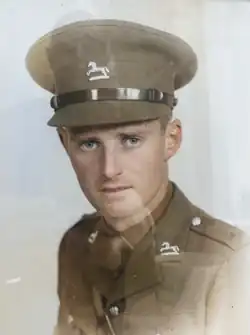 He was a captain in 17/21 Royal Lancers, was in the home forces from 1940/42 spending some time at Thetford. He was sent to North Africa Sudan/Tunis where he was wounded in his tank. He stayed in the army until the end of the war at home and spent some time at Debden where he was billeted at Shortgrove, Newport.