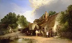 He signed some of his work as E Williams, which leads to confusion with his father, who painted in a similar style, and at times he signed as C Williams to purposely avoid such confusion. Because many of the paintings of both father and son are unsigned, it can be difficult to correctly attribute their work.[1] Edward Charles also collaborated on several paintings with William Shayer, where Williams would paint the landscape, and Shayer would add in figures and animals; his Near Wantage, Berkshire is a good example.[3][4]