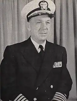 O'Donnell's first assignment in the Navy was from September 1929 to May 1930 aboard the USS Florida, working engineering and deck.[3] After service on the Florida and before World War II, he served on board the USS John D. Ford, USS Houston, and the USS San Francisco while doing postgraduate work in ordnance engineering at the Naval Postgraduate School, then in Annapolis, Maryland.[4] O'Donnell served as a gunnery officer on board the aircraft carrier USS Lexington, and served aboard her when she sank during the Battle of the Coral Sea.[5] He later continued serving as a gunnery officer aboard the USS Birmingham, serving on her throughout many of the raids and invasions she participated in throughout the war. On the night of November 8 and 9 of 1943, days after serving in the Battle of Empress Augusta Bay, the Birmingham was subjected to enemy air attacks that damaged the ship. Commander O'Donnell lead the gunnery department to defend the ship, shooting down four aircraft. For his efforts, he was awarded a Letter of Commendation from then Vice Admiral William Halsey Jr., Commander of the South Pacific Area.[3] He was promoted to captain in 1945.[3]