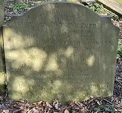 Cobbet moved to Surrey,[2] retired in 1885, and died aged 84 at Avondale, Winchmore Hill, North London on 11 October 1899.[2][6][7] He is buried in a family grave on the western side of Highgate Cemetery.