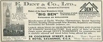 8. ^ Mercer, Vaudrey (1977). The Life and Letters of Edward John Dent, Chronometer Maker and some account of his Successors, p.101, The Antiquarian Horological Society. ISBN 0-901180-16-5.