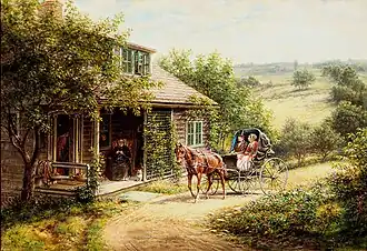 As a painter of colonial and early American themes and incidents of rural life, he displays a quaint humor. He was best known for themes involving transportation, especially railroads, but also stage coach and canal boat journeys, among other means, all rendered in minute detail.[5]