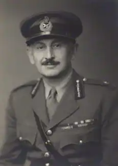 In February 1941 he was promoted to the acting rank of major-general[29] and appointed General Officer Commanding (GOC) of the new Yorkshire County Division, responsible for three independent infantry brigades that had been organised for home defence from newly raised battalions of conscripts.[3][30][6]