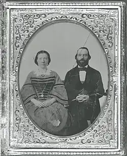 Not much is known about Edward Martin's life before he emigrated to the United States. He was born on November 18, 1818, in Preston, England.[1][2][3][4][5][6] His parents were John Martin and Ann Slater.[4] At age 18, he joined the Church of Jesus Christ of Latter-day Saints and was baptized by Orson Hyde in the Ribble River on October 14, 1837.[1][3][4] He was one of the earliest converts to the Church of Jesus Christ of Latter-day Saints in Britain.[3][6] He later married Alice Clayton in March 1840 in Preston, England.[2][4][5] He was also a journeyman house and interior painter in Scotland.[7]