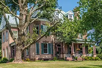 Edward Nichols House, also known as Hillcrest, is a historic home located at Leesburg, Loudoun County, Virginia. It was built in 1899, and is a 2+12-story, irregularly shaped, beige brick dwelling with Queen Anne and Colonial Revival style decorative details. It has a tall hipped roof, two-story rear ell, and features projecting two-story bay windows topped with gables on the front and east elevations. Also on the property are the contributing laundry, carriage house / barn with attached water tower, and storage shed.[3]