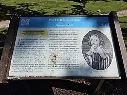 In 1624, Governor Francis Wyatt granted Waters 100 acres (0.40 km2) near Blunt Poynt.[15][16][1] As he and his wife were the first English to settle the area, it became Waters Creek (sometimes labeled Watts Creek).