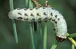 Larvae feed on various plants depending on range. These include Pseudotsuga menziesii, Abies amabilis, Abies grandis, Tsuga heterophylla, Purshia tridentata, Corylus cornuta, and Fraxinus latifolia.[3][1][4]