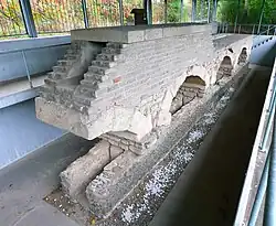 Archaeological research on the Eifel aqueduct started in the 19th century. C.A. Eick was the discoverer of the farthest source from Cologne at Grüner Pütz near Nettersheim (in 1867).[5] Systematic study of the aqueduct was carried out from 1940 to 1970 by Waldemar Haberey (de). His 1971 book is still a suitable guide along the course of the construction. In 1980, archaeologist Klaus Grewe (de) completely mapped out the location line and added it to the official German topographic map. His Atlas der römischen Wasserleitungen nach Köln (Atlas of Roman Aqueducts to Cologne, 1986) is a standard work for researchers in Roman architecture.