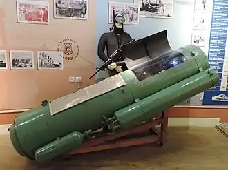 The museum has exhibits about the capture of the city of Eilat in 1949, the history of the Israel Red Sea Outpost. The museum has a collection of photos about the development of the city of Eilat dating from the 1940s to the 1960s.[3] The museum contains information and multimedia about the companies that settled in this part of Israel such as the Salt Company,[4] Mekorot Underwater Observatory Company[2] and the Eilat Electric Company.[5] The museum contains exhibits about the establishment of the city of Eilat as well as information about Israel's southern border, and there are also exhibits in the museum about the Eilat pipeline.[6] The museum also contains information about Timna Copper Mines and the port of Eilat, as well as exhibits about the city's environment. The museum contains exhibits about Operation Uvda.[7] The museum also has a missile storage container obtained from the Karina-A boat.[8] The museum has exhibits about the fauna of Israel's Red Sea coastal territories.[1] The museum has a reconstructed model of a bus from the Ma'ale Akrabim massacre.[9]