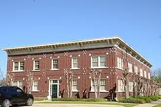 The El Dorado Apartments in El Dorado, Arkansas are a historic apartment house at 420 Wilson Place. The two story brick and limestone building was designed by Louisiana architect Cheshire Peyton, and built in 1926 in response to the discovery of oil in the area and the ensuing economic boom. It houses 24 small efficiency units, designed for use by the transient but wealthier workers and managers of the oil-related economy. The building has limestone window sills, and rows of brick-inlaid limestone squares between the windows. The cornice of the flat roof is decorated with brick dentil moulding and modillions.[2]