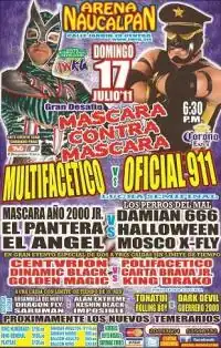 12. ^ a b ReyMexicool (July 18, 2011). "Video: Multifacético vs. Oficial 911 por las máscaras". Súper Luchas (in Spanish). Retrieved May 22, 2016.