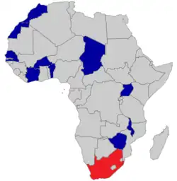 South Africa's determination to retain the disputed territory of South West Africa, which it had governed essentially as a fifth province since World War I, resulted in an armed insurgency by the People's Liberation Army of Namibia (PLAN), the militant wing of the nationalist South West African People's Organisation (SWAPO).[42] Insurgent activity took the form of ambushes and selective target attacks, particularly in the Caprivi Strip near the Zambian border.[43] Reflecting a trend characteristic of many Anglophone Commonwealth states, local police were initially granted responsibility for managing counter-insurgency operations rather than the South African armed forces.[42] However, by 1969 the security situation in Caprivi had deteriorated to the point that the SADF was forced to deploy a troop of Elands and several companies of infantry there.[44]