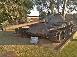 Sensing an opportunity to disengage, Greyling called off the attack, but it was too late. Exhausted by the intensity of the firefight and already demoralised by their repeated failures, the South Africans retreated. Headquarters demanded he resume the advance—Greyling retorted he would not do so without coherent planning or reconnaissance.[77] It eventually fell to an overworked 61 Mechanised to complete the objective. Due to the higher profile of their Ratel-90s they could locate T-55s over dense vegetation before the Angolan gunners in turn spotted them, an advantage Elands did not possess.[78] The armoured cars succeeded in knocking out at least five tanks on the river, which were captured and retained for inspection.[70] South Africa finally took what was left of Cuvelai on January 7.[73]