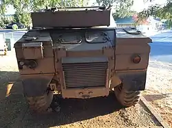 The final variant to enter production, the Eland Mk7, was introduced in 1979.[14][15] It possessed new power brakes, a modified transmission, and a lengthier hull for accommodating taller South African crewmen.[15] A domed cupola with vision blocks was also added over the commander's hatch.[14] Hard lessons driven home by Operation Savannah ensured the new Elands were also designed for operating long distances from supply and logistical centres, with maximum ease of maintenance in the field.[8] For example, the engine was now mounted on a rail frame so it could be removed and replaced in under forty minutes.[8] The Eland Mk7 was kept in production for another eight years, until its basic technology had become quite dated despite continuous upgrades.[6] The South African Armoured Corps retired most of its Elands from combat service in the late 1980s, utilising them primarily for training Ratel-90 crews.[40] In October 1988, South Africa unveiled a new indigenous armoured car known as the Rooikat.[41] The Rooikat, which had emerged from the original requirement for a larger and more effectively armed vehicle to supplant the Eland series on conventional battlefields, was much more mobile and carried a sophisticated 76mm high-velocity cannon capable of engaging armour at longer standoff ranges.[41] In 1994, the Eland-60 and Eland-90 were formally retired from the newly integrated South African National Defence Force (SANDF) in favour of the Rooikat.[1]