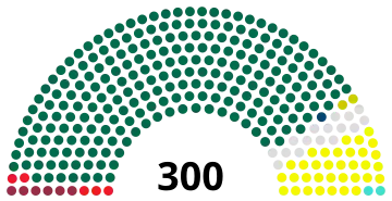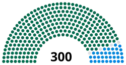 The Parliament of Bangladesh (Jatiya Sangsad) consists of 350 members elected to five-year terms. Of that number, 300 are elected in single-member territorial constituencies according to the first-past-the-post electoral system. The remaining 50 seats are reserved for women, and are filled on the basis of proportional representation by a vote of the 300 members. The number of reserved seats has been revised over the years, increasing from 30 to 45 under the 8th parliament and 45 to 50 under the 9th parliament.[1]