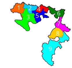 | 6th | The area from the city of Bijeljina to Šamac, including the Brčko District | 9 |
