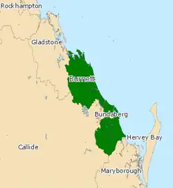 Burnett is an electoral division of the Legislative Assembly of Queensland in central Queensland, Australia.[1]