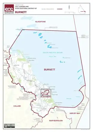 ![]() Map of the electoral district of Burnett, 2017 | |||||||||||||||