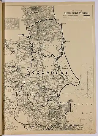 Cooroora was an electoral district of the Legislative Assembly in the Australian state of Queensland from 1912 to 1992.[1]