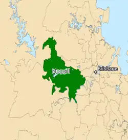 Moggill encompasses the suburbs on the south-western fringe of Brisbane, and is named for the suburb of Moggill. It also includes Chapel Hill, Pullenvale, Brookfield, Kenmore, Karana Downs and Mount Crosby. It had long been the most conservative seat in Brisbane. Indeed, during the Labor landslides of 2001 and 2004, it was the only non-Labor seat in Brisbane.