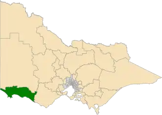 ![]() Location of South-West Coast (dark green) in Victoria | |||||||||||||||