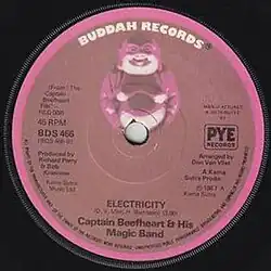 "Electricity" is a song by Captain Beefheart and his Magic Band, from their 1967 debut album Safe as Milk. Beefheart claimed that A&M Records dropped the band after co-owner Jerry Moss heard the song and declared it "too negative"[4] for his teenage daughter to listen to; Safe as Milk would ultimately be released by Buddah Records. Beefheart's vocal performance shattered the microphone recording him.[5][6]