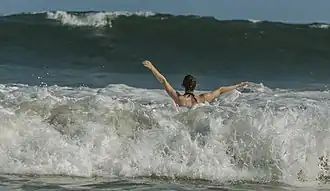 Elegushi Beach is a private beach located at Lekki, Lagos state, southwest Nigeria.[1] The beach is owned by the Elegushi royal family in Lekki, Lagos state.[2][3] Elegushi private beach is seen as one of the best beaches in Lagos and Nigeria at large. The beach entertains close to 40,000 guests every week with Sundays being the best day on the beach. Over half of all guests that are entertained on the beach weekly visit on Sundays. Their gate pass is at 2000 naira flat rate but can be discounted if you have like a group.[4] Their official Instagram handle can be used to reach them.