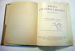- ^ a b c d Pilarczyk, Franciszek (2003). Elementarze polskie od ich XVI-wiecznych początków do II wojny światowej: próba monografii księgoznawczej [Polish Alphabet Books from Their 16th-Century Beginnings to World War II: An Attempt at a Bibliographic Monograph] (in Polish). Zielona Góra: Oficyna Wydawnicza UZ. pp. 23–24, 128. ISBN 978-83-89321-15-2.