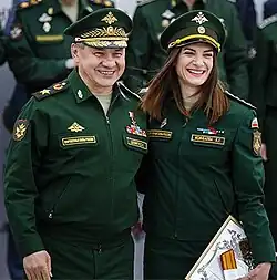 In the Russian club competitions she represents the railroad military team; she is formally an officer in the Russian army, and on 4 August 2005 she was given the military rank of senior lieutenant[48] before being promoted to captain in August 2008.[49] In 2015, she was promoted to the rank of major[32] and signed a five-year contract with the Russian Armed Forces.[50][31][32]