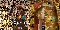 The introduction scenes of the Elfen Lied anime are a reference to Gustav Klimt's artwork such as his Stoclet Frieze paintings.