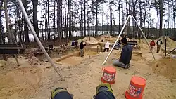 White Pond has recently attracted scientific and media[13][14] attention as having preserved a relatively long record of sediment accumulation in the pond. Several scientists have taken various core samples from White Pond that has revealed information on temperatures of non-glaciated areas during the Ice Age and information on plant and animal life in the area during the past.[15][3][16][17] One dune on the south side of White Pond has yielded a luminescence date of ~92,300 years before present (BP).[18] Platinum anomalies[19] have recently been reported at the site at an age that would provide potential evidence for the controversial Younger Dryas impact hypothesis. However, the claim that these anomalies correspond to the Younger Dryas onset[16] has been comprehensively refuted by other researchers [20]: Sec 4 : Sec. 16