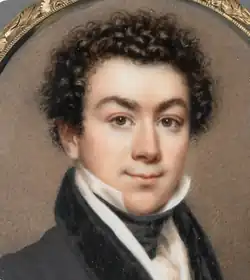 Eliza married Sidney Augustus Holly on July 19, 1825, and they remained married until his death in 1842.[3][8] Holly, a merchant in New York City, was one of eight children of David Holly (1768–1843), a large land owner in Stamford, Connecticut.[9] Holly's family, descended from one of Stamford's earliest settlers in 1642, was prominent in business and local government.[9]