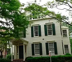 The Elizabethan Club is housed in a landmarked Federal-style building, the Leverett Griswold House, built circa 1775. It is located at 459 College Street.[5] It was previously owned successively by the Leverett Griswold and Wilbur Gilbert families.[10][5] It was renovated between 1810 and 1815. Cochran purchased the house for the club in 1911.[11] Kenneth Boroson, of Kenneth Boroson Architects, LLC designed an addition and rear garden in 1995-1996.[11][5]