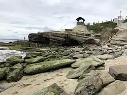 Boomer Beach, located below the bluff adjacent to the Adult Recreation Center, was a popular site for shell collecting, body surfing, and diving. Two belvederes are located directly above the beach. In 2023, the San Diego City Council approved a year-round closure of Boomer Beach for seven years to separate people from a sea lion rookery.[25]