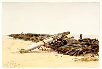 ![]() Watercolour painting of Ellen Southard wreckage lying on Crosby Sands, Liverpool on 11 October 1875