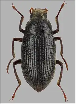 The species name is a Latin word (meaning chained) and refers to the chain-like rows of coarse large elytral punctures.[1]