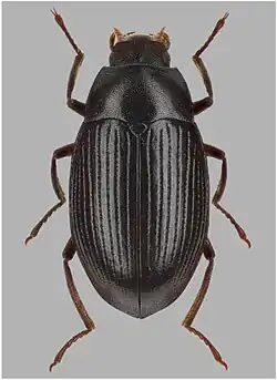 Adults reach a length of 4.15–4.36 mm (males) and 4.03–4.38 mm (females). Their body is ovate, strongly convex dorsally and integument black. The mouthparts, antennae and legs are reddish brown.