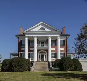 Elmwood, also known as the Hugh Caperton House, is a historic home located near Union, Monroe County, West Virginia. It was built in the 1830s, and is a two-story, nearly square brick dwelling with Greek Revival details. The front facade features wide limestone steps and a veranda, with second-story balcony, Chinese Chippendale railings at both levels, and four plain but huge plaster covered brick columns. The house was built by Congressman Hugh Caperton (1781–1847). It was home to Allen T. Caperton (1810–1876), the first ex-Confederate elected to the United States Senate after the American Civil War.[2]