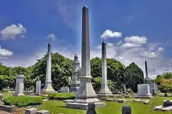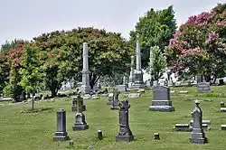 There were several outbreaks of yellow fever in Memphis during the 1870s, the worst outbreak occurring in 1878, with over 5,000 fatalities in the city itself and 20,000 along the whole of the Mississippi River Valley.[11] Some 2,500 of the Memphis victims are buried in four public lots at Elmwood; among them are doctors, ministers, nuns, travelers, and even sex workers who died while tending to the sick.[2][12]