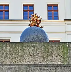 At the top is the Brückensprengungsdenkmal (litt. Bridge Explosion Monument), which commemorates the events of the 19 October 1813, during the Battle of Leipzig.[2][3] At this spot, many soldiers were killed in the water swollen by rainfall, including the Polish prince and French marshal Józef Poniatowski.