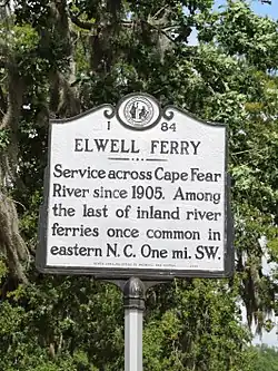 3. ^ a b c d "Marker ID: I-84, Elwell Ferry". North Carolina Historical Markers Program. Archived from the original on 2013-01-29.