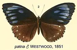 Elymnias patna, the blue-striped palmfly, is a butterfly in the family Nymphalidae. It was described by John Obadiah Westwood in 1851. It is found in the Indomalayan realm.[2]