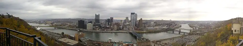 Famous view of downtown Pittsburgh from Emerald View Park on Mt. Washington