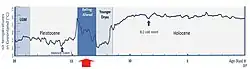After 15,000 years ago, the post-glacial climate change at the end of the Pleistocene made the climate much warmer and more humid. This led to an increase in the productivity of the tropical layers of the earth.[8] In addition, the climate change led to severe cold periods that were not conducive for hunter-gathering.[8] Areas like China and the Levant, for example, began selecting for certain features in their crops that would allow them to persist through the sporadic cold periods. [8]
